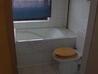 Tussenverdiep: 2 slaapkamers (1x2 pers. en 1x3 pers.), douche met toilet en wastafel.